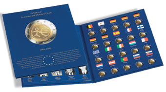 Elengante e pratico folder speciale, apposito per contenere l'intera serie congiunta da 20 monete da 2 euro E.M.U. Rapporto qualità prezzo/imbattibile.