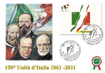 150° Unità d'Italia - busta con francobollo ed annullo primo giorno di emissione "Roma Filatelico" 7/1/11.