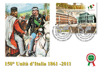 150° Unità d'Italia - bustone con foglietto ed doppio annullo primo giorno di emissione "Roma Camera dei Deputati" 17/3/11.