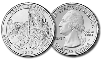 USA set 2 monete (Zecca Denver + Zecca Philadelphia) da 1 quarto di dollaro della serie "Parchi Nazionali" dedicata al Parco di Grand Canyon