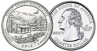 USA set 2 monete (Zecca Denver + Zecca Philadelphia) da 1 quarto di dollaro della serie "Parchi Nazionali" dedicata al Parco di Great Smoky Mountains