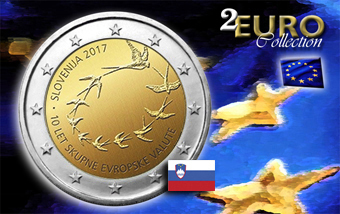 Moneta da 2 euro commemorativo 2017 fiordiconio celebrativa del 10° anniversario dell' introduzione dell'Euro.