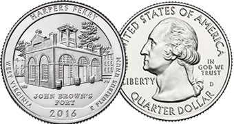 USA set 2 monete (Zecca Denver + Zecca Philadelphia) da 1 quarto di dollaro della serie "Parchi Nazionali" dedicata al Parco di Harpers Ferry