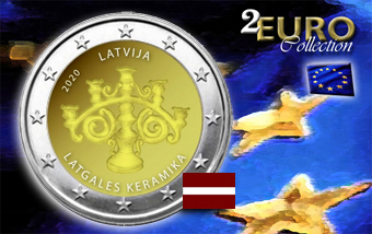 Moneta da 2 euro commemorativo fiordiconio 2020 ma emessa solo nel 2021 che celebra le ceramiche di Latgales