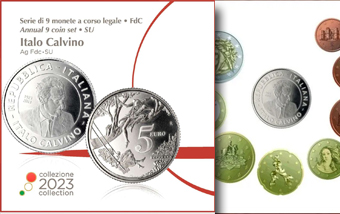 Edizione speciale della serie divisionale da 8 monete fiordiconio in Euro 2024 su folder ufficiale IPZS, con l'aggiunta del 5 euro d'argento a colori dedicato a Italo Calvino. Oggetto da collezione per il celebre errore proprio sulla moneta da 5 euro di argento. |