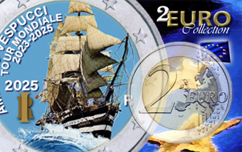 Moneta da 2 euro commemorativo a colori dedicata al veliero dell'Amerigo Vespucci