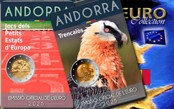 Coppia di 2 monete da 2 euro su coin card ufficiali 2024 (2 euro Giochi piccoli stati e 2 euro avvoltoio barbuto)