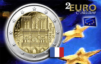 Moneta da 2 euro 2025 emessa dalla Zecca di Parigi che celebra la riapertura anche delle torri superiori della Cattedrale di Notre-Dame dopo il terribile incendio del 2019