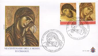 Set di 2 buste FDC con i quattro valori relativi all'emissione -VII CENTENARIO DELLA MORTE DI CIMABUE- 26/9/2002