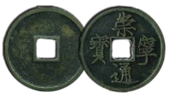 Moneta dalla lontana Cina da 10 cash, coniata a mano quasi 1000 anni fa, durante la dinastia di Hui Zong (1100 and 1126), sul cui fronte ne è riprodotta la calligrafia