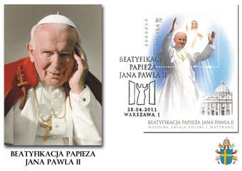 Busta con annullo primo giorno di emissione delle Poste della Polonia per celebrare (emissione congiunta con il Vaticano) la Beatificazione di Giovanni Paolo II. 19 aprile 2011