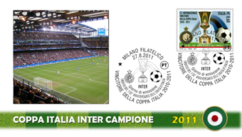 Busta con annullo primo giorno che celebra la vittoria dei nerazzurri della Coppa Italia edizione 2010/2011