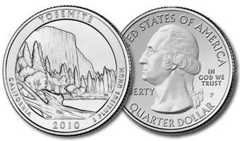 USA set 2 monete (Zecca Denver + Zecca Philadelphia) da 1 quarto di dollaro della serie "Parchi Nazionali" dedicata al Parco di Yosemite