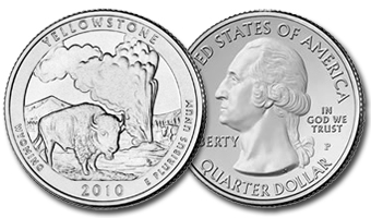 USA set 2 monete (Zecca Denver + Zecca Philadelphia) da 1 quarto di dollaro della serie "Parchi Nazionali" dedicata al Parco di Yellowstone