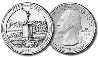 USA set 2 monete (Zecca Denver + Zecca Philadelphia) da 1 quarto di dollaro della serie "Parchi Nazionali" dedicata al Parco di Gettysburgh