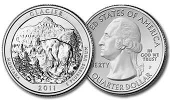 USA set 2 monete (Zecca Denver + Zecca Philadelphia) da 1 quarto di dollaro della serie "Parchi Nazionali" dedicata al Parco di Glacier