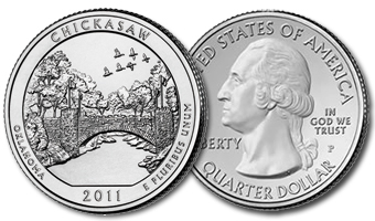 USA set 2 monete (Zecca Denver + Zecca Philadelphia) da 1 quarto di dollaro della serie "Parchi Nazionali" dedicata al Parco di Chickshaw
