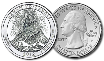 USA set 2 monete (Zecca Denver + Zecca Philadelphia) da 1 quarto di dollaro della serie "Parchi Nazionali" dedicata al Parco di Hawaii Vulcanoes