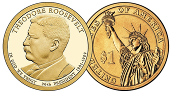 Theodore Roosevelt set 2 monete fiordiconio della Zecca di Denver e Philadelphia.