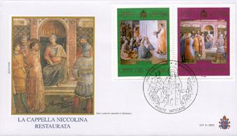 Serie di 2 buste FDC relativa all' emissione di 4 valori dedicata al restauro della Cappella Niccolina. 6 Maggio 2003