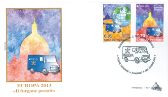 2 maggio 2013 - Busta FDC con 2 valore relativi all'emissione annuale "Europa", che quest'anno è dedicata al Furgone Postale