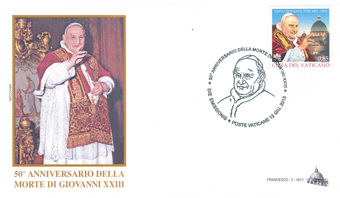12 giugno 2013 - Busta FDC con 1 valore relativo al 50° anniversario della morte di Papa Giovanni XXIII.