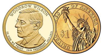 Woodrow Wilson set 2 monete fiordiconio della Zecca di Denver e Philadelphia.