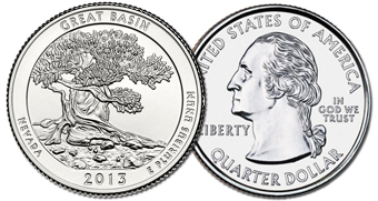 USA set 2 monete (Zecca Denver + Zecca Philadelphia) da 1 quarto di dollaro della serie "Parchi Nazionali" dedicata al Parco di Great Basin