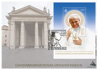 Busta FDC col foglietto del Vaticano sulla Canonizzazione di Papa Giovanni Paolo II, e annullo primo giorno di emissione del 21 marzo.
