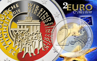 Speciale Moneta da 2 euro a colori ad alta definizione della Germania celebrativa del 25' anniversario della caduta del Muro di Berlino.