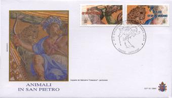 Serie di 2 buste FDC relativa all' emissione di 4 valori dedicata agli animali dei dipinti in San Pietro. 6 Maggio 2003