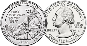 USA set 2 monete (Zecca Denver + Zecca Philadelphia) da 1 quarto di dollaro della serie "Parchi Nazionali" dedicata al Parco di Cumberland Gap