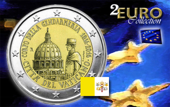 Moneta da 2 euro vaticano 2016 su blister originale dedicata al Bicentenario della Gendarmeria.