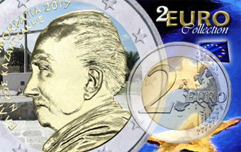 Speciale Moneta da 2 euro a colori ad alta definizione 2017 celebrativa del 60' anniversario della morte di Nikos Kazantzakis.