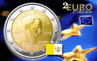 Moneta da 2 euro Vaticano 2018 su blister originale dedicata al 50' anniversario della morte di Padre Pio. Consegna dopo il 22 ottobre