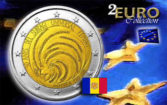 Moneta da 2 euro emessa su blisterpack dalla Repubblica di Andorra e dedicata ai 50 anni del suffragio universale.