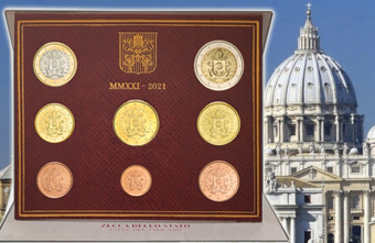 Vaticano Divisionale Euro 2021, 8 monete fior di conio in confezione ufficiale, Pontificato di Francesco. Tiratura solo 37.000 serie.