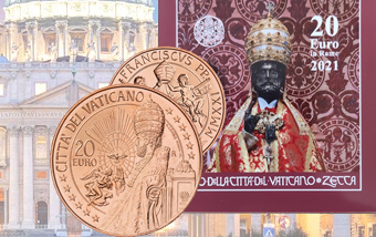 Seconda emissione di una bellissima moneta da 20 euro in rame, dedicata all'Arte ed alla Fede, su cofanetto ufficiale. Spedizione dal 24 maggio