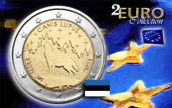 Moneta da 2 euro in fiordiconio emessa dalla Zecca Estone e celebrativa del cane lupo