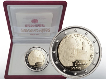 Moneta da 2 euro Vaticano 2017 versione fondo specchio su cofanetto originale dedicata al VII centenario della morte di Dante Alighieri