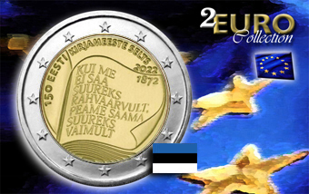 Moneta da 2 euro in fiordiconio 2022 emessa dalla Zecca Estone e dedicato al 150º anniversario della Società letteraria estone