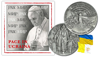 Questa pregiata medaglia viene venduta in cofanetto con l’immagine di Papa Francesco. L'Ufficio Numismatico del Vaticano ha annunciato che tutto il ricavato della vendita delle medaglie sarà devoluto alla fondazione del Santo Padre per opere caritative a favore del popolo ucraino. |