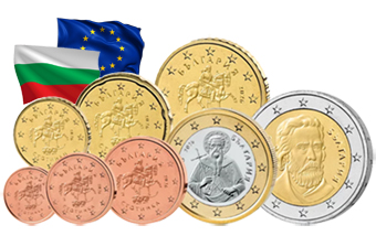 Set da 8 monete in euro fiordiconio della Bulgaria, la nazione che il primo gennaio 2026 è entrata ufficialmente nell'Unione Monetaria Europea, adottando le monete in euro.
