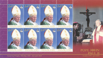 Foglietto appartenente alla serie IN MEMORIAM PAPA G.PAOLO II di 8 francobolli, emesso da Swaziland.
