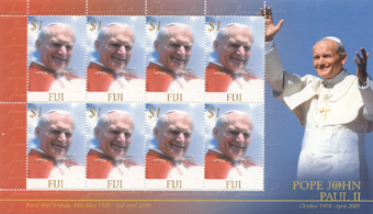 Foglietto appartenente alla serie IN MEMORIAM PAPA G.PAOLO II di 8 francobolli, emesso da Fiji.