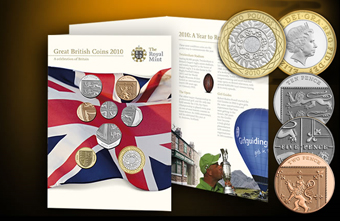 NICE PRICE! Blisterpack illustrato ufficiale emesso dalla prestigiosa Royal Mint di Londra, contenente la bellissima nuova serie inglese da 7 monete fiordiconio 2010.