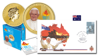 | Viaggio del Papa in Australia con celebrazione della Giornata Mondiale della Gioventù (luglio 2008 -8 buste), abbinato alla moneta ufficiale in folder emessa dalla Zecca di Sydney, in offerta speciale. |